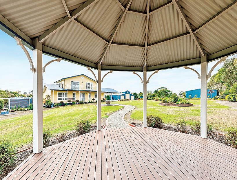 Private from the road behind a screen of established trees, the two level home oozes quintessential country charm, sitting within a formal garden of manicured flower beds, ornamental trees, traditional fountain and a charming gazebo.