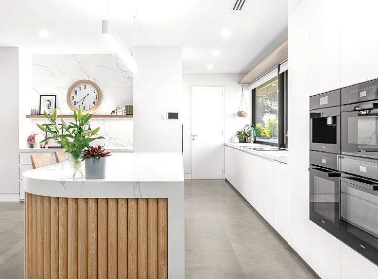 The elegant Caesarstone benchtops and subtly slatted Polytec cabinetry pairs magnificently with the modern polished concrete flooring and lavish light fixtures, making for a stylish and sophisticated home that marries efficiency with aesthetics. Discover more about Virtue Homes’ inspiring custom-built projects, visit: virtuehomes.com.au or check out their Traralgon display homes: 2-8 Broadway Boulevard, Traralgon | 68 Marshalls Road, Traralgon, open 7 days.