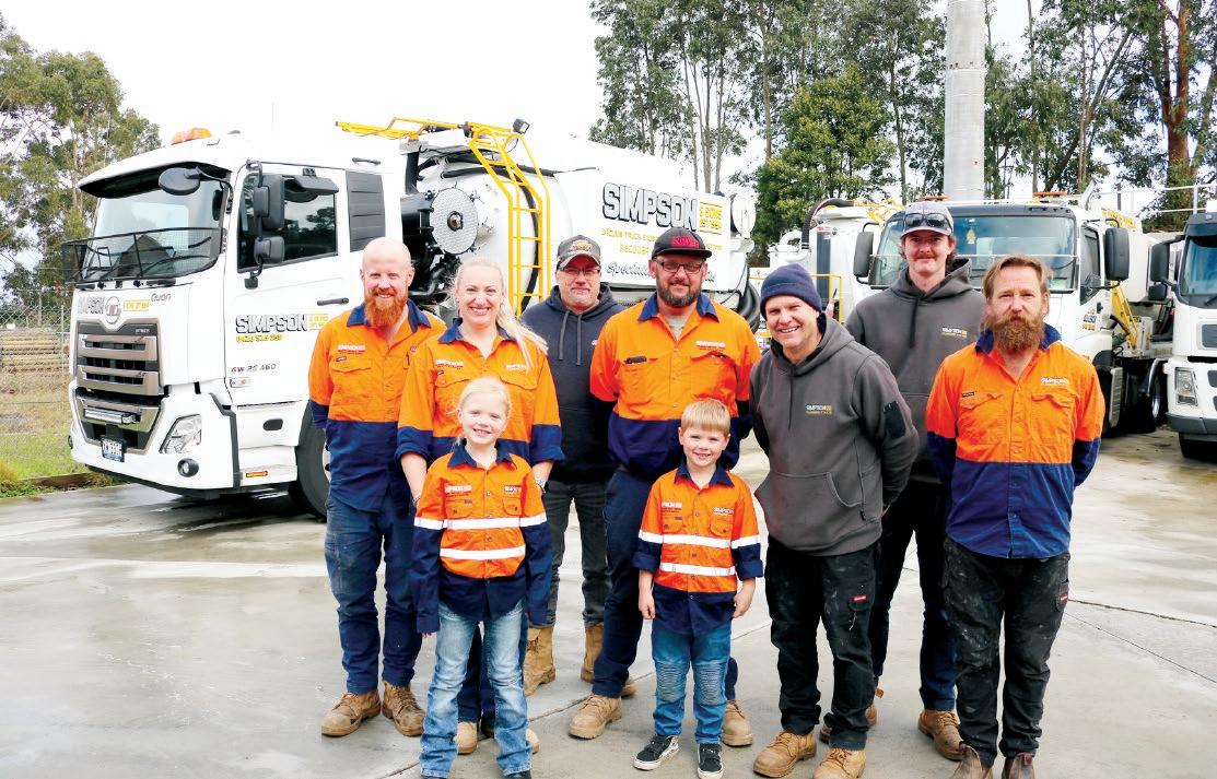 left: Adam Simpson, Kylie Simpson, Brad Scott, Clarke Gouge, Nathan Browne, Riley Duck and Angus McKillop. Front from left: Mackenzie Simpson and Jonathan Simpson.