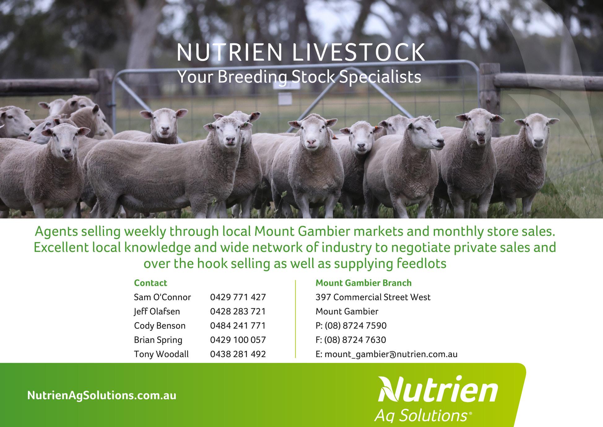 Nutrien Livestock: Sam O’Connor 0429 771 427