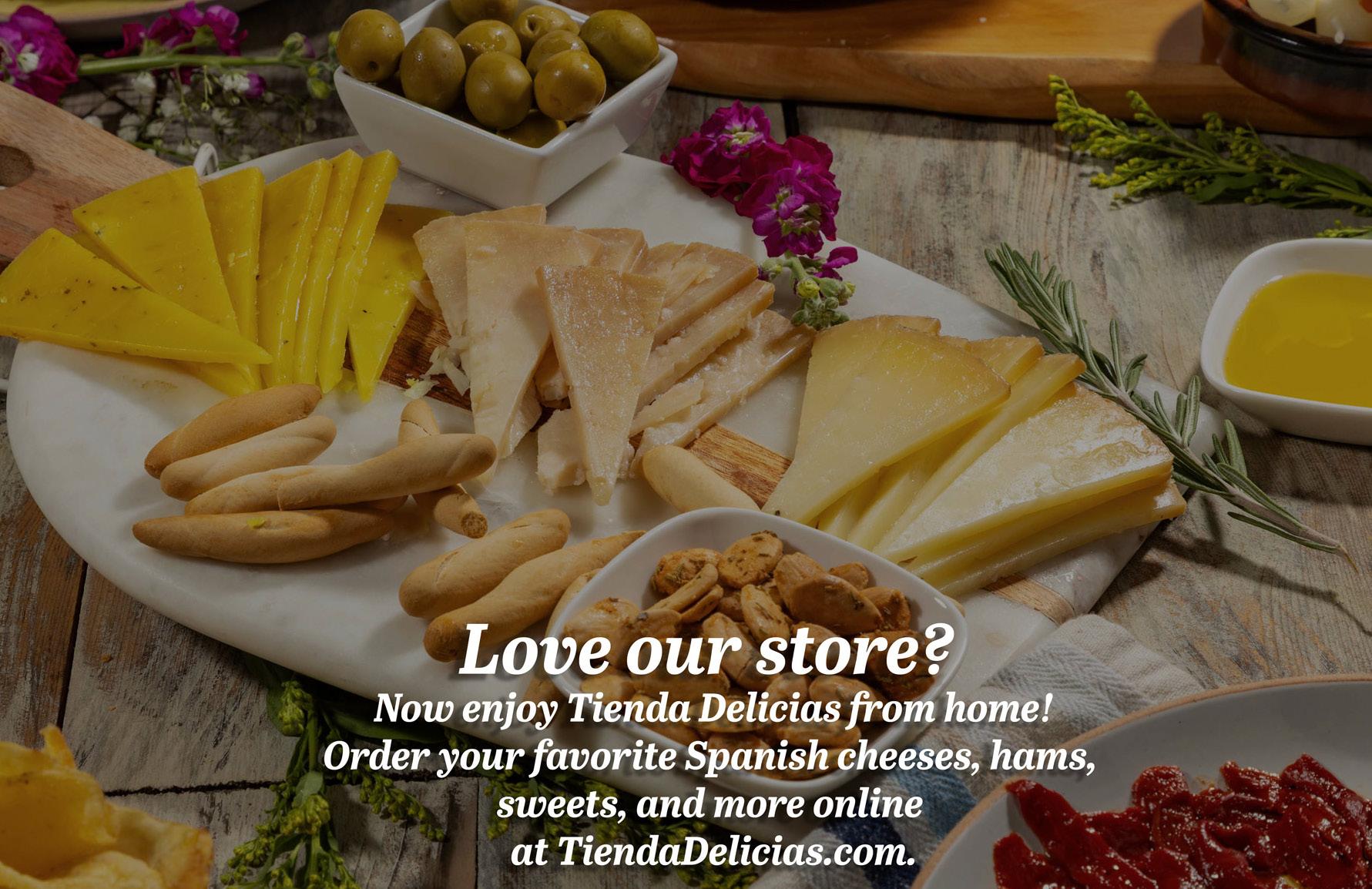 Chorizo, salchichón de Vic, queso manchego, queso Mahón, queso mozzarella fresco, aceitunas, uvas, tomates cherry
