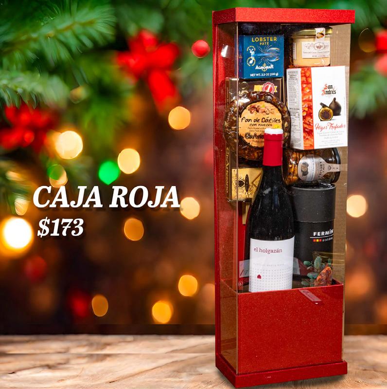 Jamón serrano, coppa serrana, chorizo, queso manchego, queso Idiazabal, regañas, pretzels, aceitunas, uvas, orejones, pera y blueberries.