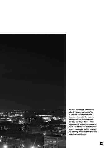 Reckless thrillseeker. Irresponsible idiot. Trespasser. Just some of the accusations that are sometimes thrown at those who, like me, have an interest in the abandoned and derelict - the things that Joe Public may never see, things that lie over the fence, beneath our feet and above our heads – as well as a healthy disregard for authority, health and safety culture and social conditioning.
