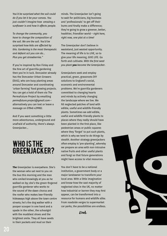 The Greenjacker is everywhere. She’s the woman who sat next to you on the bus this morning and the man who smiled knowingly at you as he walked on by; she’s the green-fingered guerrilla gardener who works to the sound of the dawn chorus and the roofer who makes bee-friendly hideaways high above the town centre streets; he’s the dog walker with a pooper scooper in one hand and a spade in the other, the schoolgirl with the muddiest shoes and the brightest smile. They all have seeds in their pockets and mud on their