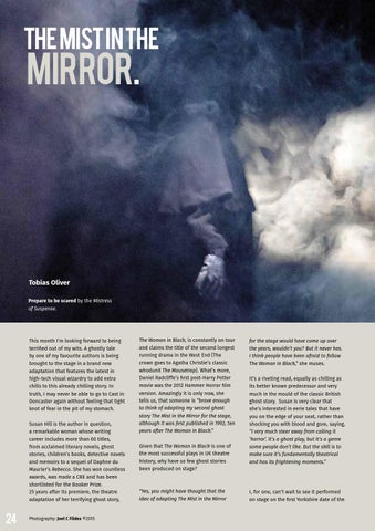 for the stage would have come up over the years, wouldn’t you? But it never has. I think people have been afraid to follow The Woman in Black,” she muses. It’s a riveting read, equally as chilling as its better known predecessor and very much in the mould of the classic British ghost story. Susan is very clear that she’s interested in eerie tales that have you on the edge of your seat, rather than shocking you with blood and gore, saying, “I very much steer away from calling it ‘horror’. It’s a ghost play, but it’s a genre some people don’t like. But the skill is to make sure it’s fundamentally theatrical and has its frightening moments.”