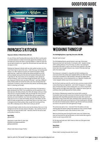 Slinking into Papacass’s Kitchen with my collar pulled up above my chin, I don’t even have to look at the menu. I order the soup, not knowing what flavour is on offer. Butternut squash and roasted red pepper, freshly made that day. I settle into a seat by the window and gaze out at the world, at people leaning into the wind and smokers braving the storm to get their fix. My soup arrives and it’s everything I need, piping hot and full of flavour. I eat a lot of soup through the winter and I can tell you, Papacass’s Kitchen serve up some of the best - each day a different batch, freshly made and served hot with a roll, from old favourites like mushroom or tomato to new concoctions like celeriac and Bramley apple (which is amazing, by the way). But don’t let me get hung up on the soup. All the food I’ve tried here is good, wholesome and fresh. From sandwiches and the salad bar to the daily specials, like stews and pies, this little cafe always cooks up a treat. They even do a massive breakfast. Why pay through the nose at one of the many chain coffee shops or bakeries when you can support local business, eat much healthier, nicer food and probably save a few quid while you’re at it? It’s small and friendly, with just a few tables, but the staff are lovely and genuinely care about what they do. Each day’s menu is designed around what produce they can get that morning and they even offer a takeaway service. What more could you ask for? As the wind howls I settle into the corner by the window. Elvis is on in the background and the rain taps along on the glass. I dip a buttery chunk of bread into my soup and take a bite - delicious, food for the soul as well as the belly. A must try. Ryan Madin @madin1991 Papacassis is open: Mon-Fri, 8am-3pm facebook.com/papacassskitchen @PapacassKitchen