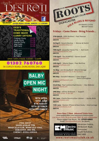 Doors Open 7.30pm Advanced Tickets from: www.wegottickets.com/rootsmusicclubdoncaster Live Music Fans 16 yrs & under FREE IN with ticketholder Please suppor Live Music. Tel: 07939148603 Email: Donnijonti@aol.com for details