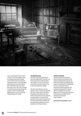 HAUNTED YORKSHIRE Haunted Yorkshire was founded in 2003 by Richard and Joe with the sole purpose of helping those experiencing paranormal activity by investigating its claims in a professional and confidential manner, and using the latest in paranormal research equipment and techniques. Although they no longer offer an investigation service their website and their range of books should be the first port of call for anyone interested in paranormal South Yorkshire... www.h a u n te d-yo rk s h ire .co.u k