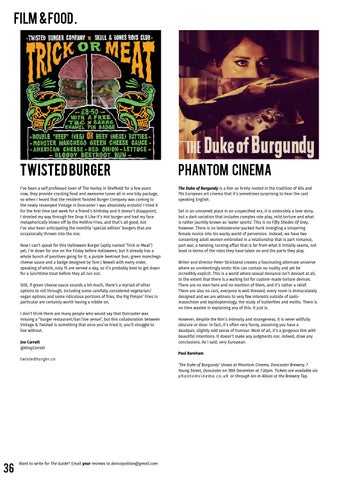 Set in an unnamed place in an unspecified era, it is ostensibly a love story, but a dark variation that includes complex role play, mild torture and what is rather jauntily known as ‘water sports’. This is no Fifty Shades Of Grey, however. There is no testosterone-packed hunk inveigling a simpering female novice into his wacky world of perversion. Instead, we have two consenting adult women embroiled in a relationship that is part romance, part war, a twisting, turning affair that is far from what it initially seems, not least in terms of the roles they have taken on and the parts they play. Writer and director Peter Strickland creates a fascinating alternate universe where an unrelentingly erotic film can contain no nudity and yet be incredibly explicit. This is a world where sexual deviance isn’t deviant at all, to the extent that there is a waiting list for custom-made torture devices. There are no men here and no mention of them, and it’s rather a relief. There are also no cars, everyone is well dressed, every room is immaculately designed and we are witness to very few interests outside of sadomasochism and lepidopterology, the study of butterflies and moths. There is no time wasted in explaining any of this. It just is. However, despite the film’s intensity and strangeness, it is never willfully obscure or dour. In fact, it’s often very funny, assuming you have a deadpan, slightly odd sense of humour. Most of all, it’s a gorgeous film with beautiful intentions. It doesn’t make any judgments nor, indeed, draw any conclusions. As I said, very European. Paul Bareham ‘The Duke of Burgundy’ shows at Phantom Cinema, Doncaster Brewery, 7 Young Street, Doncaster on 18th December at 7.30pm. Tickets are available via p h a n t o m c i n e m a . c o . u k or through Ian & Alison at the Brewery Tap.