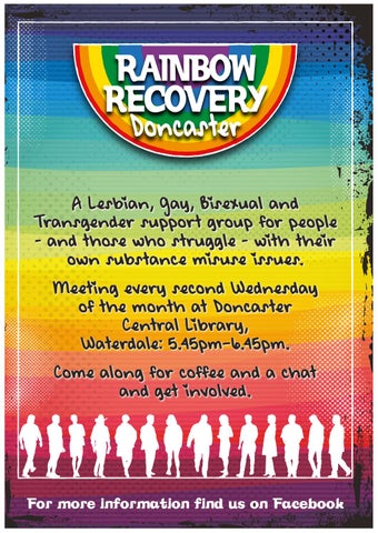 A Lesbian, Gay, Bisexual and Transgender support group for people - and those who struggle - with their own substance misuse issues. Meeting every second Wednesday of the month at Doncaster Central Library, Waterdale: 5.45pm–6.45pm. Come along for coffee and a chat and get involved.