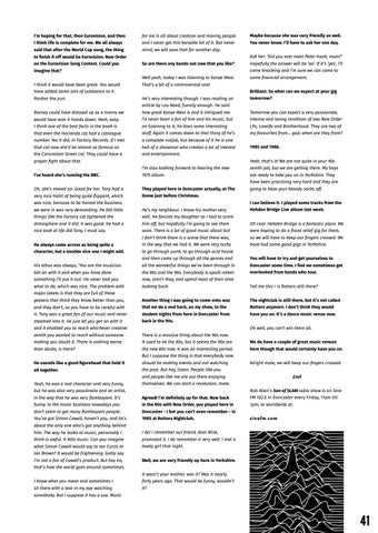 have been practising very hard and they are going to blow your bloody socks off. I can believe it. I played some tracks from the