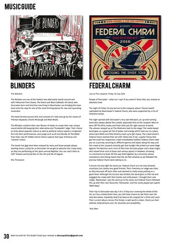 The band formed around 2014 and consists of 3 lads who go by the names of Thomas Haywood, Charlie McGough and Matt Neale. The Blinders combine their own flavour of styles to create their own unique sound whilst still keeping their alternative and ‘Punkadelic’ edge. Their choice to write about populist culture as well as political culture sparks a ‘enigmatic’ fire into their performances, and songs such as 84 and Murder At The Ballet from their new EP Hidden Horror Dance capture that type of diverse and ‘visceral’ notion. The bands live gigs have been enjoyed by many and leave people always wanting more! Luckily for us Doncaster lot we get to welcome the 3 boys back, as they are performing at this years annual MapFest. You can catch them at CAST theatre and Social Bar on the 4th and 5th of August. Mia Thompson