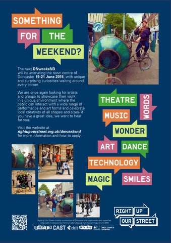 Right Up Our Street is led by a consortium of Doncaster arts organisations and supported using public funding by the National Lottery through Arts Council England until 2016
