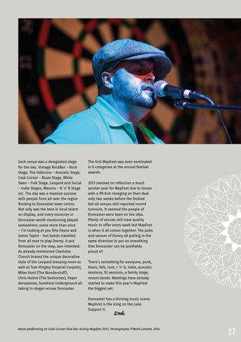 The first MapFest was even nominated in 6 categories at the annual festival awards. 2013 seemed on reflection a much quieter year for MapFest due to issues with a PR firm reneging on their deal only two weeks before the festival but all venues still reported record turnouts. It seemed the people of Doncaster were keen on the idea. Plenty of venues still have quality music to offer every week but MapFest is when it all comes together. The pubs and venues of Donny all pulling in the same direction to put on something that Doncaster can be justifiably proud of. There’s something for everyone, punk, blues, folk, rock, r ‘n’ b, indie, acoustic sessions, DJ sessions, a family stage, covers bands. Meetings have already started to make this year’s MapFest the biggest yet. Doncaster has a thriving music scene. MapFest is the icing on the cake. Support it.