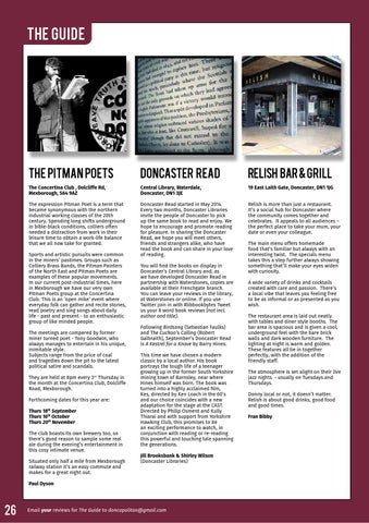 Sports and artistic pursuits were common in the miners’ pastimes. Groups such as Colliery Brass Bands, the Pitman Painters of the North East and Pitman Poets are examples of these popular movements. In our current post-industrial times, here in Mexborough we have our very own Pitman Poets group at the Concertina Club. This is an ‘open mike’ event where everyday folk can gather and recite stories, read poetry and sing songs about daily life - past and present - to an enthusiastic group of like minded people. The meetings are compered by former miner turned poet - Tony Goodwin, who always manages to entertain in his unique, inimitable style. Subjects range from the price of coal and tragedies down the pit to the latest political satire and scandals. They are held at 8pm every 3rd Thursday in the month at the Concertina Club, Dolcliffe Road, Mexborough. Forthcoming dates for this year are: Thurs 18th September Thurs 16th October Thurs 20th November The club boasts its own brewery too, so there’s good reason to sample some real ale during the evening’s entertainment in this cosy intimate venue. Situated only half a mile from Mexborough railway station it’s an easy commute and makes for a great night out.
