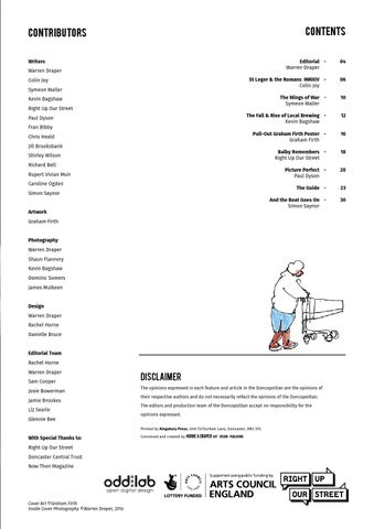 Disclaimer The opinions expressed in each feature and article in the Doncopolitan are the opinions of their respective authors and do not necessarily reflect the opinions of the Doncopolitan. The editors and production team of the Doncopolitan accept no responsibility for the opinions expressed. Printed by Kingsbury Press, Unit 13/Durham Lane, Doncaster, DN3 3FE.