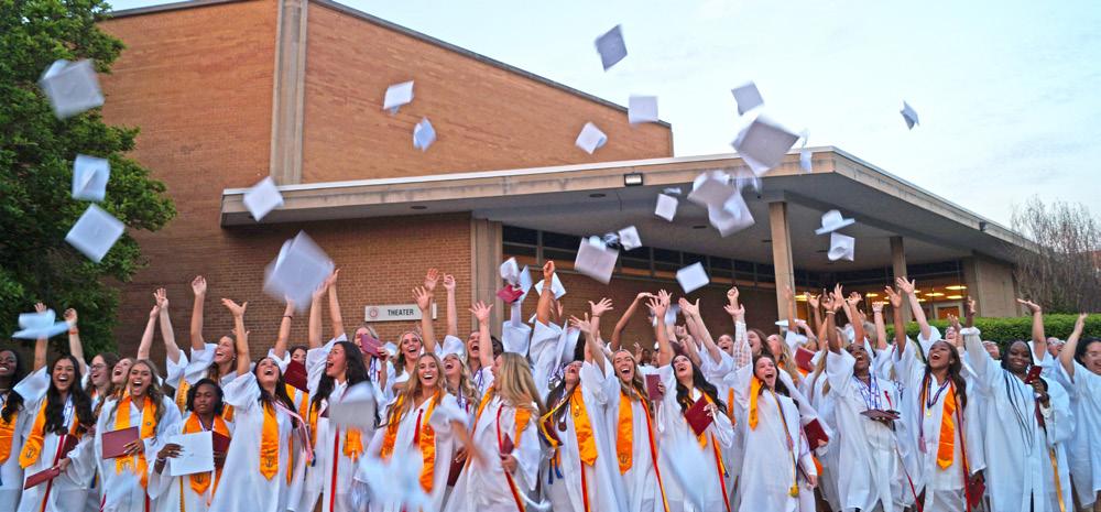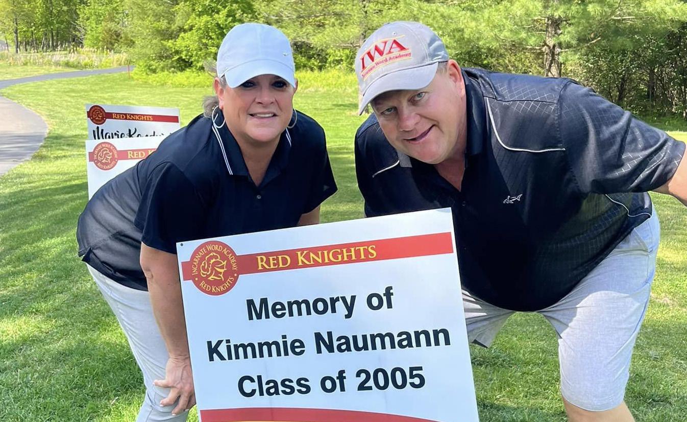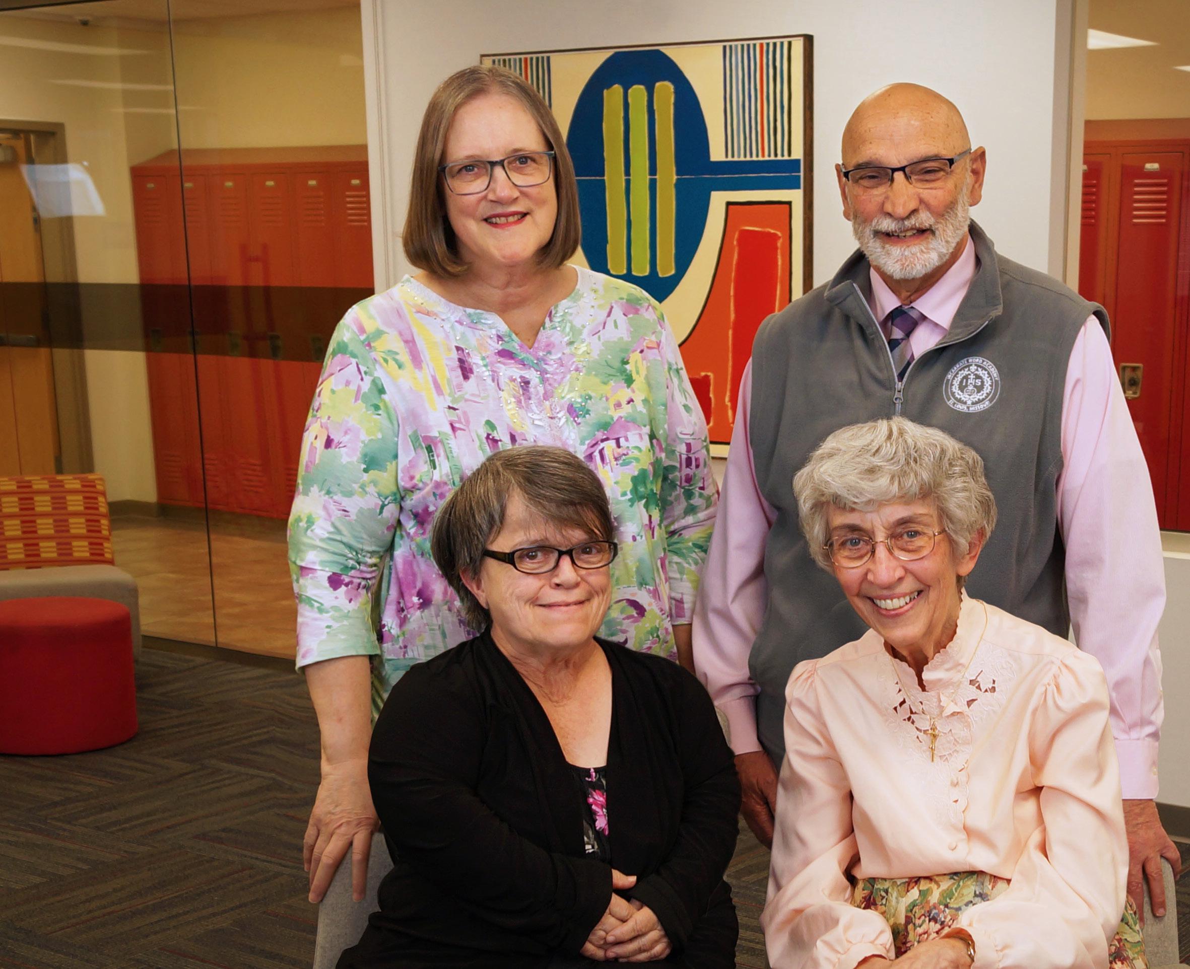 Carol Barnett as Snow White, surrounded by male faculty and staff members at IWA’s Halloween costume contest.
