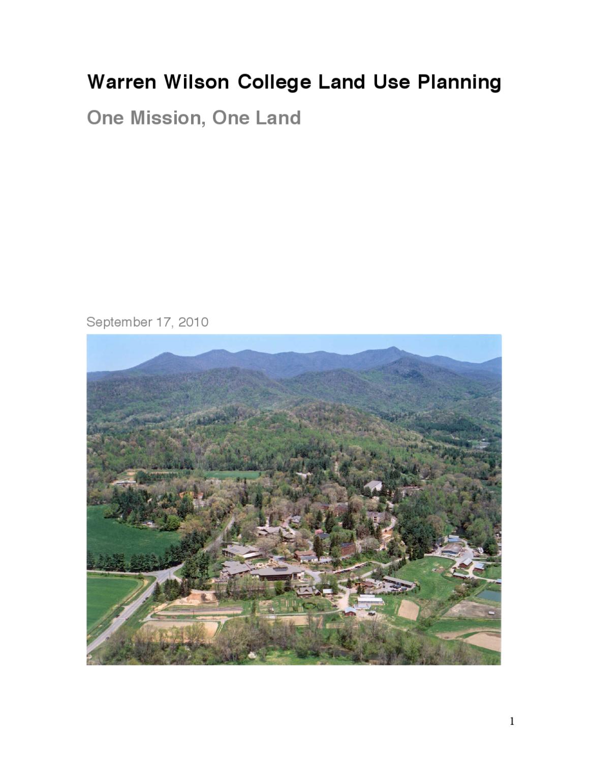 Along with special leadership and guidance from Wade Macfie, the committee’s time, effort, and willingness to speak frankly has made this a better document. Now the challenge is to insure that this work remains a living document, a template for the kind of living environment that will support Warren Wilson College’s unique relationship to the land and our built environment. Ian Robertson September 17, 2010