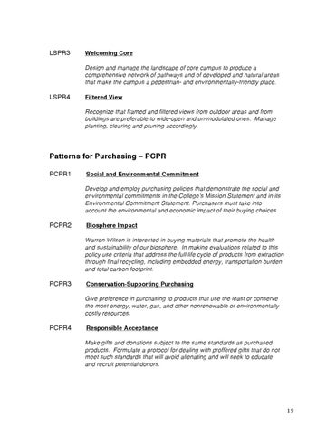 Social and Environmental Commitment Develop and employ purchasing policies that demonstrate the social and environmental commitments in the CollegeĘźs Mission Statement and in its Environmental Commitment Statement. Purchasers must take into account the environmental and economic impact of their buying choices.