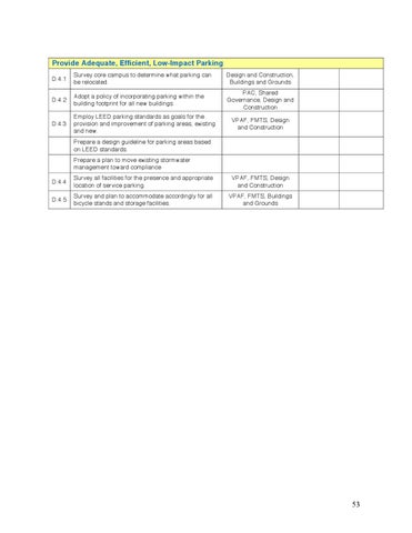 Prepare a design guideline for parking areas based on LEED standards. Prepare a plan to move existing stormwater management toward compliance D.4.4