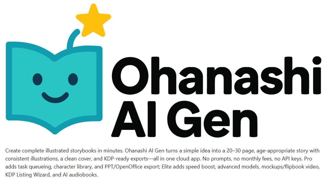 Ohanashi AI Gen Review 2025 – Unlock effortless AI storybook creation and turn simple ideas into 20–30 page illustrated children’s books in minutes. Perfect for Amazon KDP and self-publishing. No prompts, no monthly fees, just unlimited creative power.