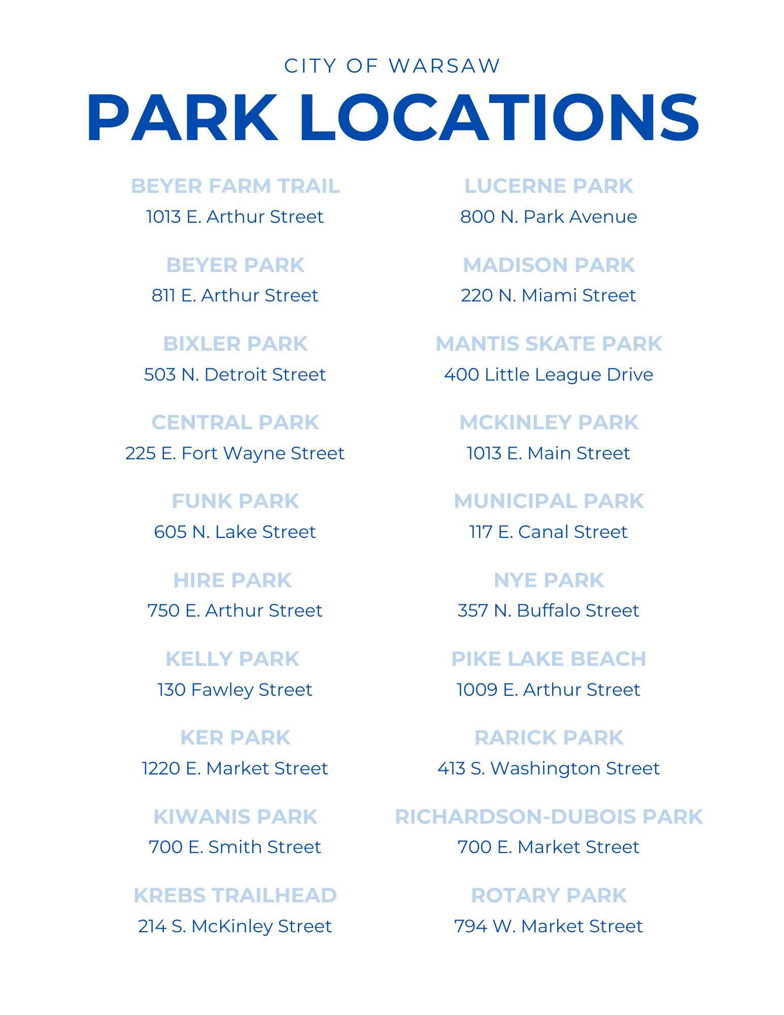 Photo Disclosure: Warsaw Parks & Recreation Department reserves the right to photograph programs and events for documentation and marketing purposes. If you do not wish to be included in this photography, please notify our staff.
