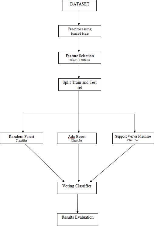 RandomForest, SVM, Adaboost and Ensemble learning are the algorithms used. The dataset is first pre-processed and features extracted, after which it is passed to these technique.