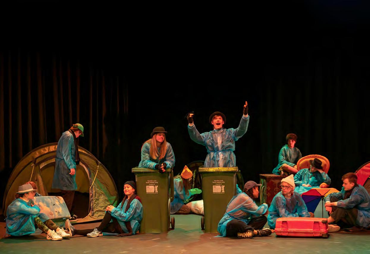 Our talented actors from Warwick School and King’s High School made a spectacular return to the stage when they brought a modern retelling of the 15th century morality play, Everyman, to the Bridge House Theatre. Written specifically for us by Adrian Jarvis, this year’s senior production – fuelled by an electronic score and songs –was contemporary in both its subject and its styling. Set in 2021, our Everyman was suffering with COVID and was forced to reflect upon the choices and relationships of his life; specifically, the people he had harmed in pursuit of his own wealth and reputation. Digital screens showed video which accompanied the action on stage and the ensemble switched expertly between roles as diverse as business executives (Robot Song), the homeless (Salvation), and even the inside of Everyman’s head (Pulchra, Cretia and co). The cast were tremendous from the outset, embracing the challenges within the text, offering creative ideas during rehearsals and experimenting with the music that is woven into the play. The result was a tremendously moving, timely and powerful piece of theatre that reminded us all that whatever we believe, the need to ‘do good things’ in our lives prevails.