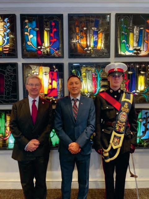 The AGM itself took place on Saturday morning. were honoured to have our standard paraded Edward, a cadet from Winchester College, looked incredibly smart. He was accompanied Major Darius Szwajkowski, the Contingent Commander of the CCF. Viscount Younger, alumnus of Winchester College, was pleased and chat with them both.