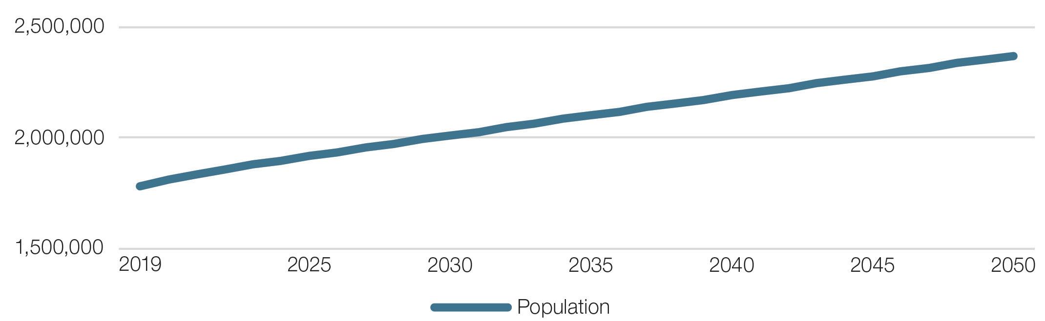 Figure 1. Population Growth Along the Wasatch Front, 2019-2050