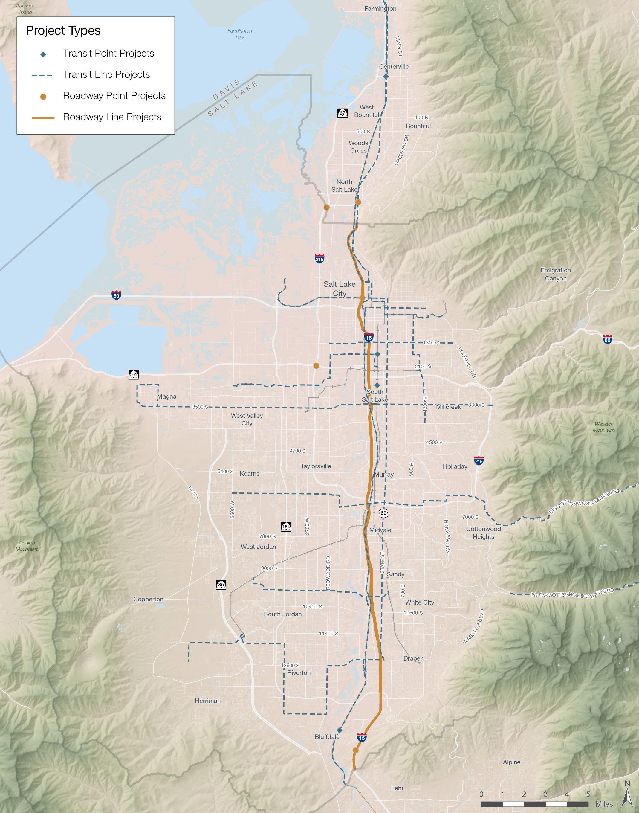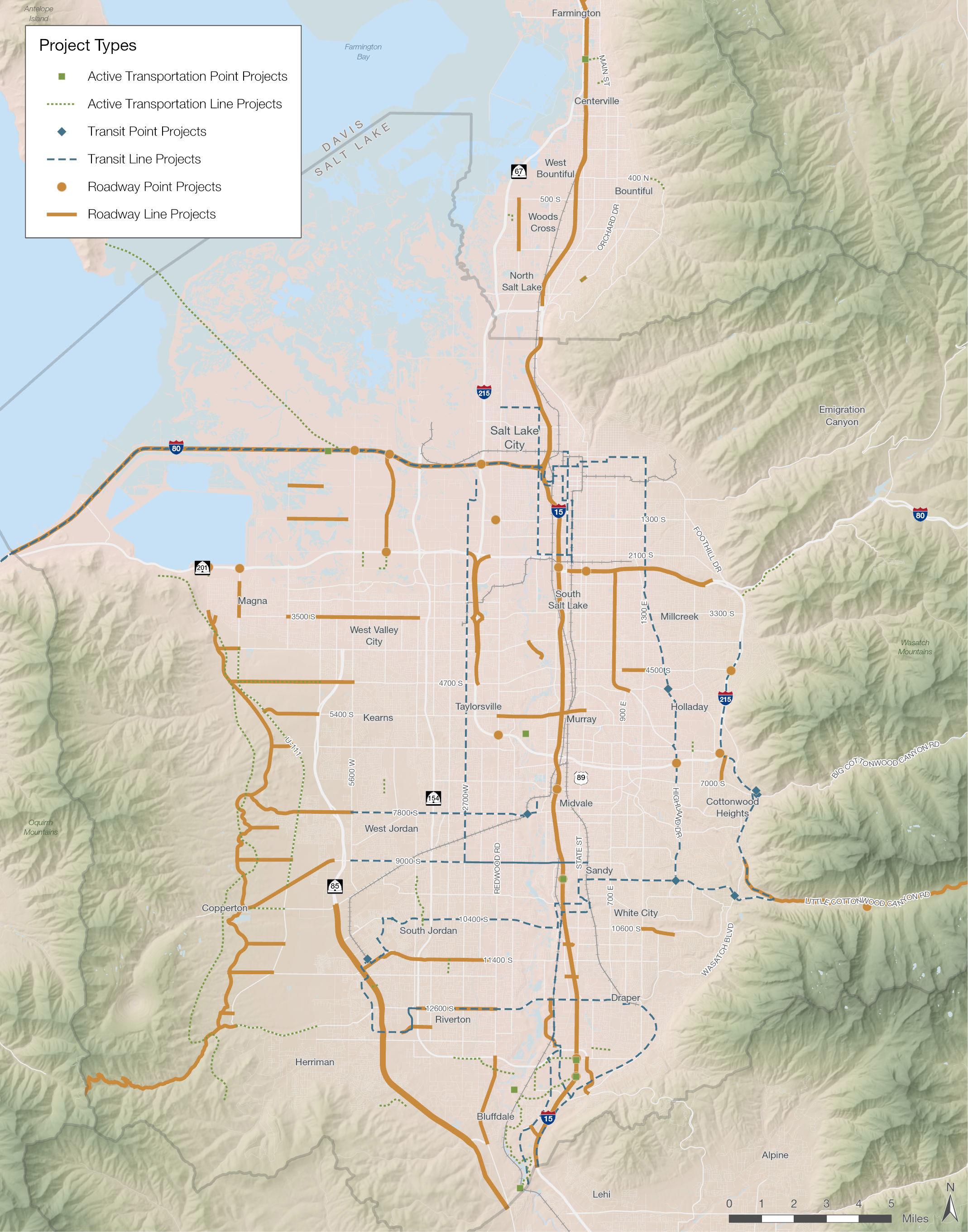 The Wasatch Front 2019-2050 Regional Transportation Plan (2019-2050 RTP) is the Salt Lake City-West Valley City and Ogden-Layton Urbanized Areas’ fiscally constrained plan for roadway, transit, active transportation, and other facility improvements to meet projected travel demand over the next 31 years. Developed in accordance with federal guidelines, the 2019-2050 RTP includes roadway, transit, and active transportation facilities identified by region-wide planners, engineers, elected and appointed officials, various planning partner state agencies and committees, stakeholder groups, special interest groups, and the general public that would best serve the needs of the Wasatch Front Region and its two Urbanized Areas. The planning process and the steps used to develop the 2019-2050 RTP are presented in this technical report, along with an analysis and evaluation of three transportation and land use alternatives that contributed to the final recommendations. Social, economic, and environmental impacts of the 2019-2050 RTP recommendations were examined, analyzed, and documented. The Wasatch Front Regional Transportation Plan also documents the process used to select and phase needed transportation projects. The financial aspects of the 2019-2050 RTP include projected revenues over the next 31-year period to cover the estimated costs of recommended priority roadway, transit, and active transportation improvements.