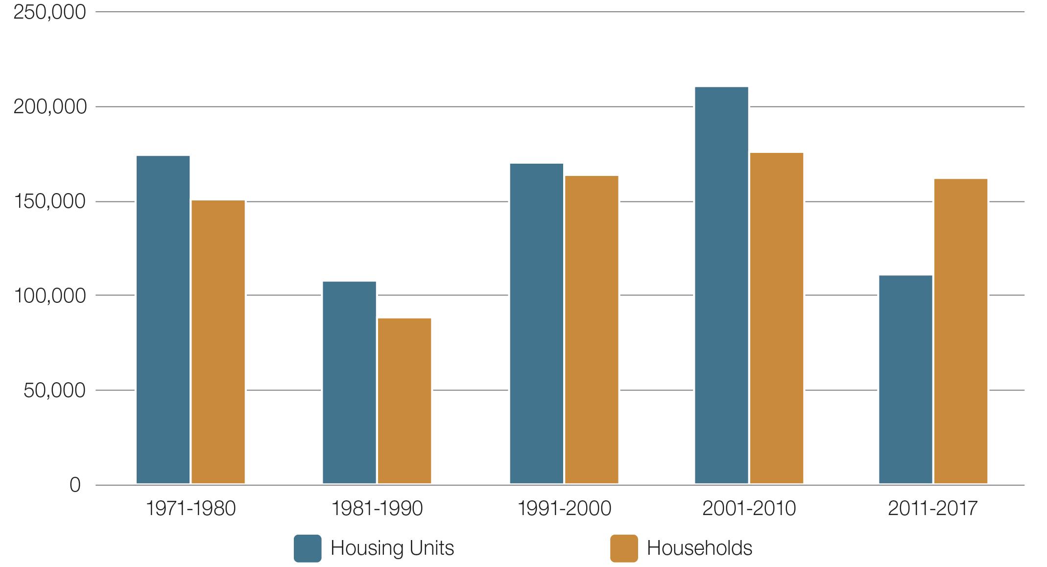Figure 4. Increase in Households Compared to Increase in Housing Units for Utah4