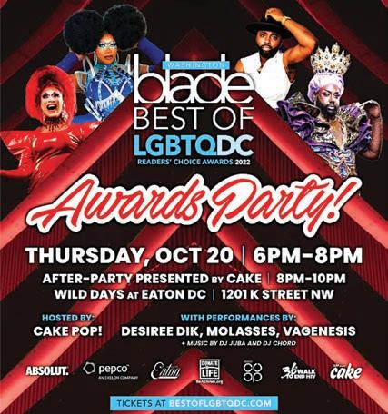 There will be an after party from 8-10 p.m. presented by Cake. Attendees must be 21 and over. Tickets available now at bestofLGBTQDC.com.