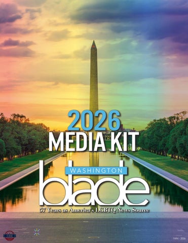 All material in the Washington Blade is protected by federal copyright law and may not be reproduced without the written consent of the Washington Blade. The sexual orientation of advertisers, photographers, writers and cartoonists published herein is neither inferred nor implied. The appearance of names or pictorial representation does not necessarily indicate the sexual orientation of that person or persons. Although the Washington Blade is supported by many fine advertisers, we cannot accept responsibility for claims made by advertisers. Unsolicited editorial material is accepted by the Washington Blade, but the paper cannot take responsibility for its return. The editors reserve the right to accept, reject or edit any submission. A single copy of the Washington Blade is available from authorized distribution points, to any individual within a 50-mile radius of Washington, D.C. Multiple copies are available from the Washington Blade office only. Call for rates. If you are unable to get to a convenient free distribution point, you may receive a 52-week mailed subscription for $195 per year or $5.00 per single issue. Checks or credit card orders can be sent to Phil Rockstroh at prockstroh@ washblade.com. Postmaster: Send address changes to the Washington Blade, PO BOX 53352 Washington, DC 20009. The Washington Blade is published weekly, on Friday, by Brown Naff Pitts Omnimedia, Inc. Rates for businesses/institutions are $450 per year. Periodical postage paid at Washington, D.C., and additional mailing offices. Editorial positions of the Washington Blade are expressed in editorials and in editors’ notes as determined by the paper’s editors. Other opinions are those of the writers and do not necessarily represent the opinion of the Washington Blade or its staff. To submit a letter or commentary: Letters should be fewer than 400 words; commentaries should be fewer than 750 words. Submissions may be edited for content and length, and must include a name, address and phone number for verification. Send submissions by e-mail to knaff@ washblade.com.
