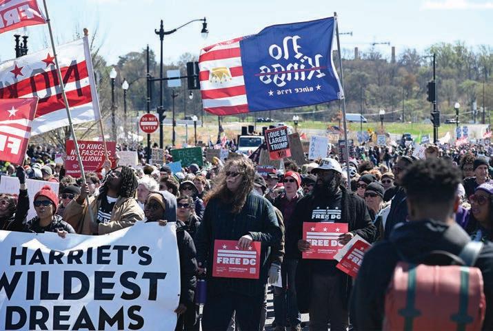 A “No Kings” demonstration was held in Anacostia on Saturday to protest the Trump administration. Speakers at the rally included LGBTQ activist, Rayceen Pendarvis. Following the rally, demonstrators marched across the Frederick Douglass Memorial Bridge.
