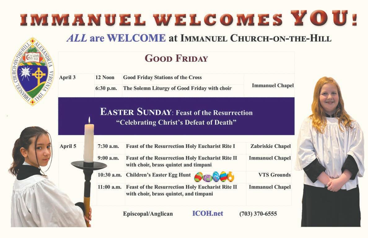 Foundry United Methodist Church holds two Easter Sunday services at 9 and 11:15 a.m.