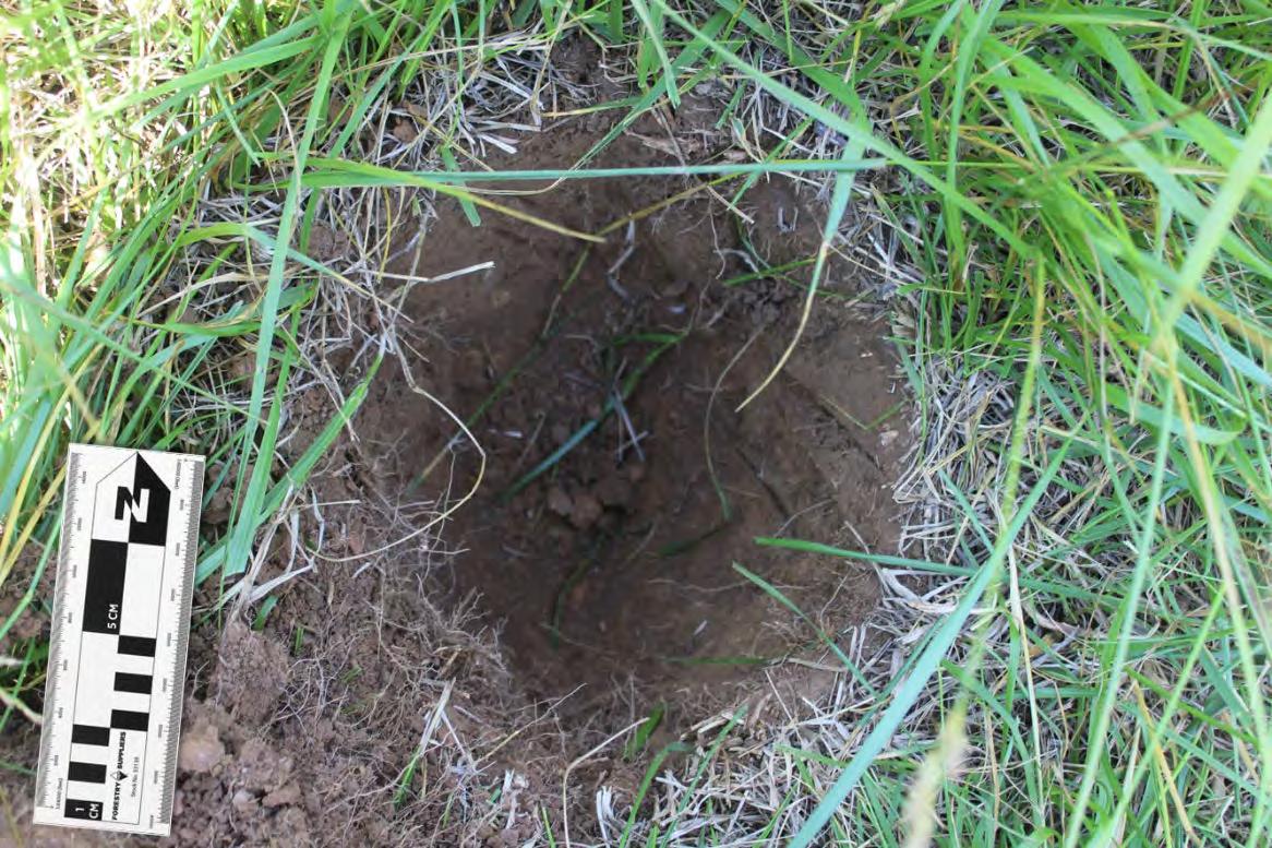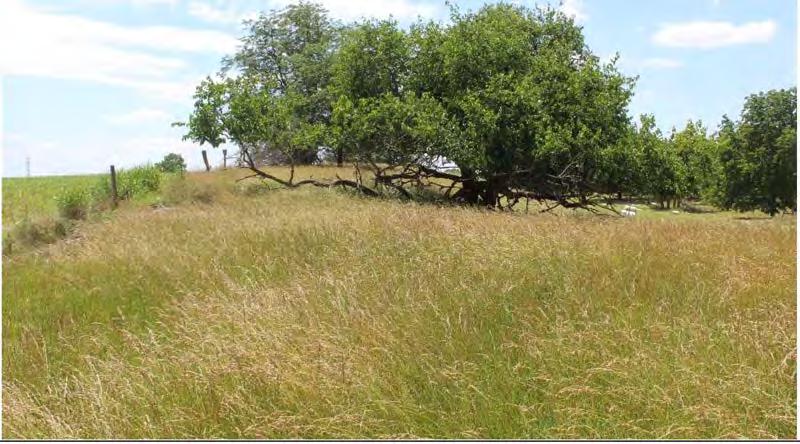 In a 9/10/24 letter submitted by HDC, notification was made of a small cemetery on the historic property boundary. The cemetery is noted as being approximately 700 feet west of the project area. When mapped using GIS the location appears to be closer to 935 feet west of the project. During the investigation, no evidence of a historic cemetery was identified, and the topography makes the extension of the cemetery into the project area unlikely as it appears the cemetery is located on another ridge separated by a drainage.