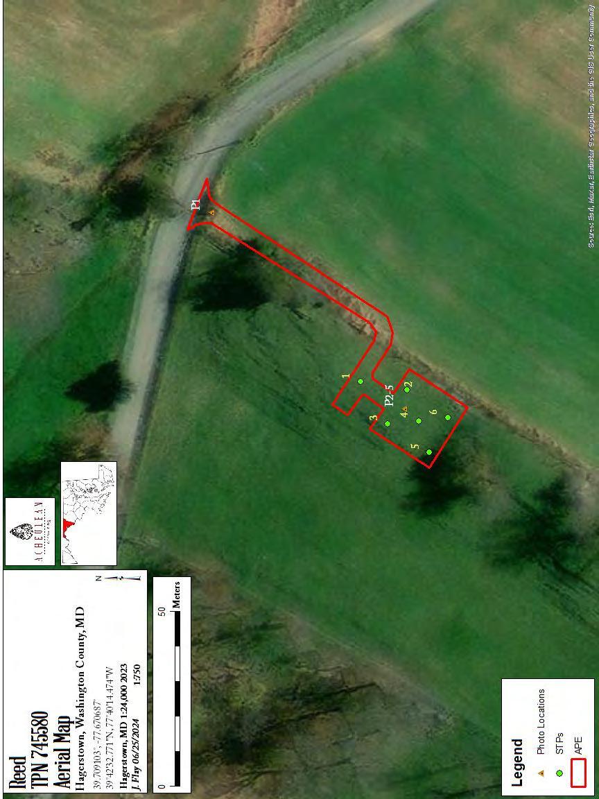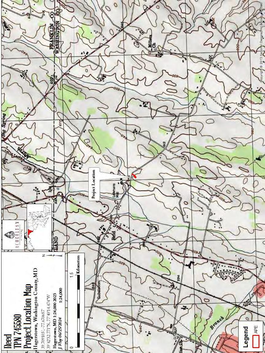 A review of the Maryland Medusa database of National Register Sites and Districts, Certified Local Districts and Architectural Surveys, Archaeology Viewer, National Register Information System website (http://www.nr.nps.gov/) and interactive map was conducted on June 21, 2024, by Jason C. Flay, Archaeologist at Acheulean. Based upon this review, Acheulean determined that there is One Historic District in the APE-VE, with a combined total of 16 individual resources. 1 NRHP listed or eligible property within the APE-DE.
