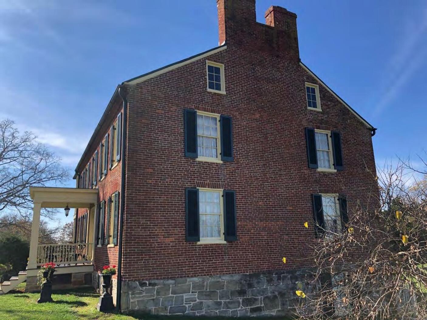 Antietam Farm is located along Mills Road in a rural setting about four miles south of Sharpsburg in Washington County, Maryland. The farmstead consists of a ca. 1844 Federal/Greek Revival brick, two-and-one-half-story, five-bay, vernacular style dwelling on an 11-acre parcel of land on the western side of Mills Road, with a non-contributing, open five-bay frame equipment shed located south of the home and a modern, non-contributing gazebo to the west of the house. The contributing farm structures, including a mid-19th-century wagon shed and a brick-and-frame Pennsylvania bank barn, sit on 67 acres on the eastern side of Mills Road. The current owner of the farm bought the property in 1988 and set out to rehabilitate the house and return it to its mid-19th-century appearance. The house has had only four owners and was updated through the years to reflect current design trends. The rehabilitation has followed the Secretary of the Interior’s guidelines for restoring historic properties. Because no pictures existed of the house’s interior or exterior during the mid-19th century, much research went into the restoration. Reproduction elements were copied from originals found on the property, and nearby houses provided clues for adding period details. The owners employed master woodworkers, glaziers, and plasterers over the 30-year restoration effort. Many of the house’s original features, including doors, window shutters, shutter dogs, columns, pilasters, and a fireplace mantle, were found on the property and reused. The farm buildings have had the modern silos removed, and modern additions have been covered with period-correct materials in keeping with the historic viewshed. The house is located in a setting of rolling hills, pasture, and deciduous trees along the