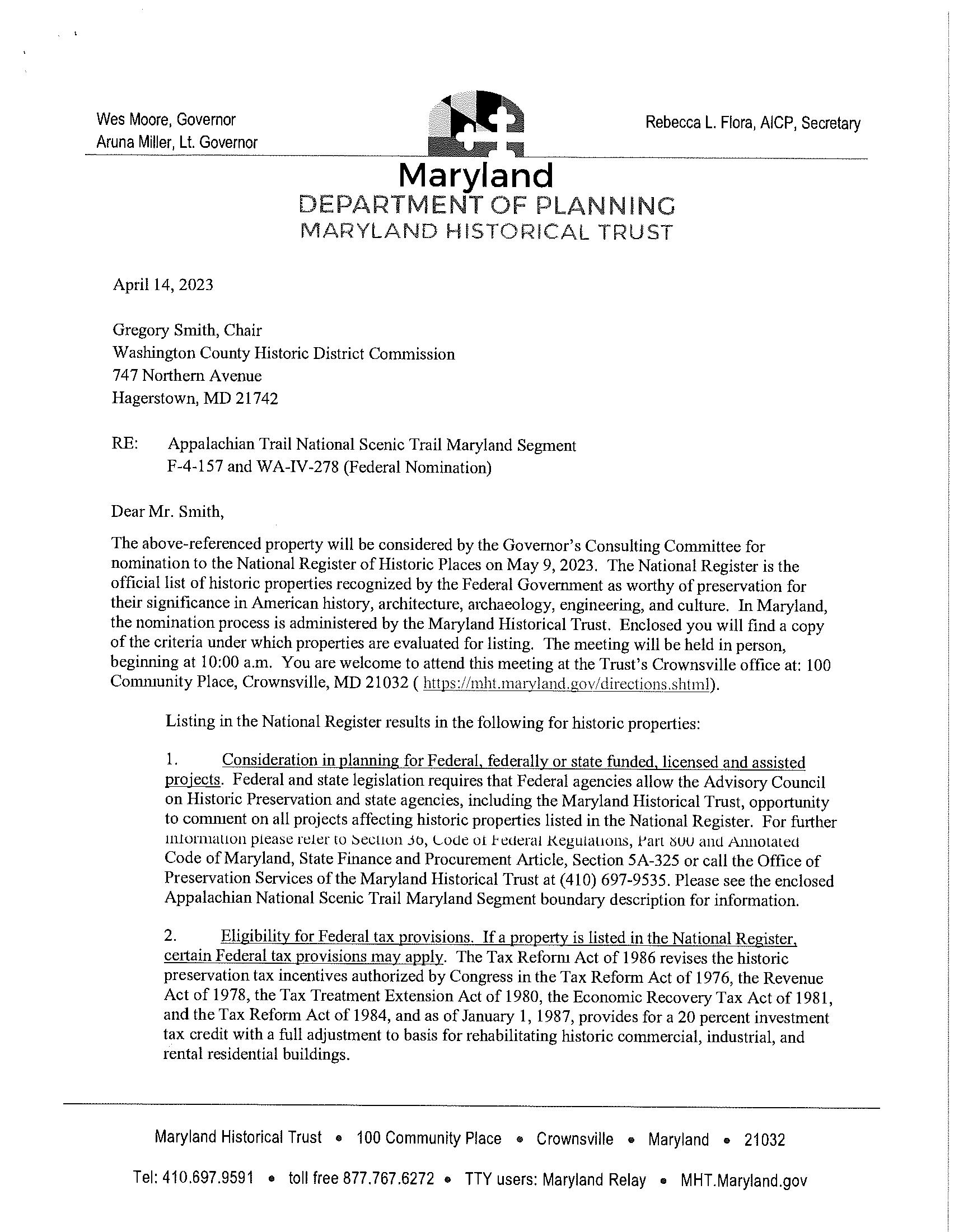 nominates the ANST Maryland Segment for listing in the National Register of Historic Places (National