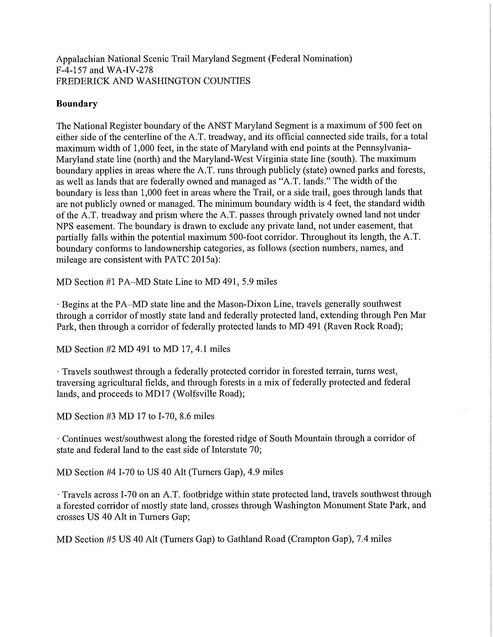 Appalachian National Scenic Trail Maryland Segment Washington and Frederick, MD Name of Property County and State