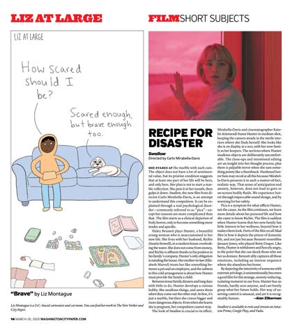 “Brave” by Liz Montague Liz Montague is a D.C.-based cartoonist and cat mom. You can find her work in The New Yorker and City Paper. 14 march 20, 2020 washingtoncitypaper.com