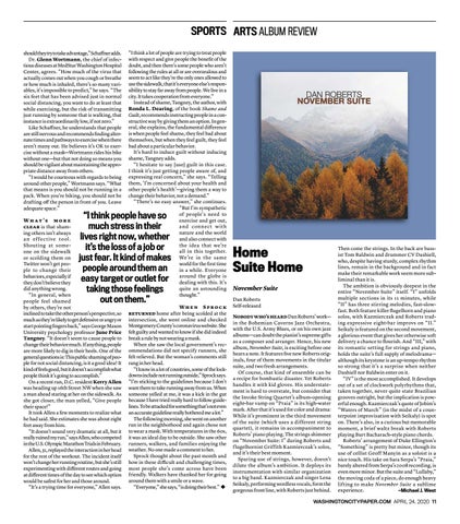 Wh at ’s m o r e clear is that shaming others isn’t always a n ef fec t ive to ol. Shouting at someone on the sidewalk or scolding them on Twitter won’t get people to change their behaviors, especially if they don’t believe they did anything wrong. “In general, when people feel shamed by others, they’re not inclined to take the other person’s perspective, so much as they’re likely to get defensive or angry or start pointing fingers back,” says George Mason University psychology professor June Price Tangney. “It doesn’t seem to cause people to change their behavior much. If anything, people are more likely to dig in their heels. One of the general questions is: This public shaming of people for not social distancing, is it a good idea? It kind of feels good, but it doesn't accomplish what people think it’s going to accomplish.” On a recent run, D.C. resident Kerry Allen was heading up 16th Street NW when she saw a man ahead staring at her on the sidewalk. As she got closer, the man yelled, “Give people their space!” It took Allen a few moments to realize what he had said. She estimates she was about eight feet away from him. “It doesn’t sound very dramatic at all, but it really ruined my run,” says Allen, who competed in the U.S. Olympic Marathon Trials in February. Allen, 31, replayed the interaction in her head for the rest of the workout. The incident itself won’t change her running routine, but she’s still experimenting with different routes and going at different times of the day to see which option would be safest for her and those around. “It’s a trying time for everyone,” Allen says.