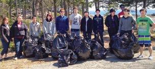 The Machiasport clean-up crew with the trash they picked up on Knowlton Beach.