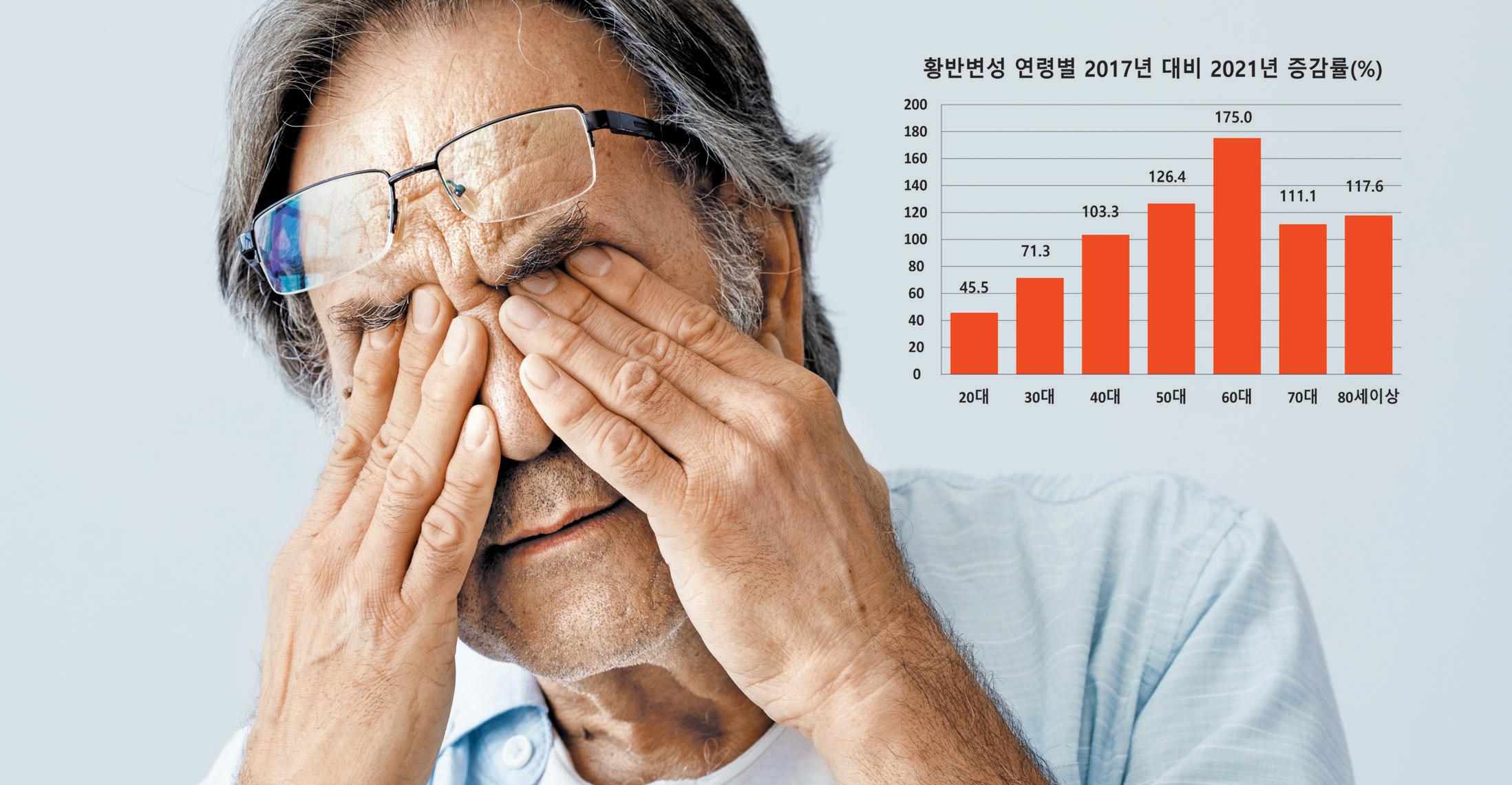 이다. 이에따라눈조절력도64%증가 했다. 또한, 아스타잔틴은망막모세혈관 의혈류량을증가시켜눈에풍부한영양 을공급해보다선명하고정확하게볼수 있도록돕는다. 항산화또한뛰어나다. 항산화는활성 산소를제거해조직의산화나노화를방 지하는것을말하는데, 아스타잔틴의항 산화력은비타민C의약 6000배에달하 는것으로나타났다. 아스타잔틴은연어, 송어등붉은어류에함유돼있지만눈피 로를개선하기에는그양이매우적어기 능성식품등다른경로로직접섭취하는 것이좋다. ◇황반색소밀도60대에절반뚝, 루테인 섭취해야 황반변성으로진료받은환자는 2017년 약16만명, 2021년38만명을 넘어서면 서4년만에130%나증가했다. 황반은 시각세포가밀집돼있고빛을가장정확 하게받는부위다. 정밀한시력을담당하