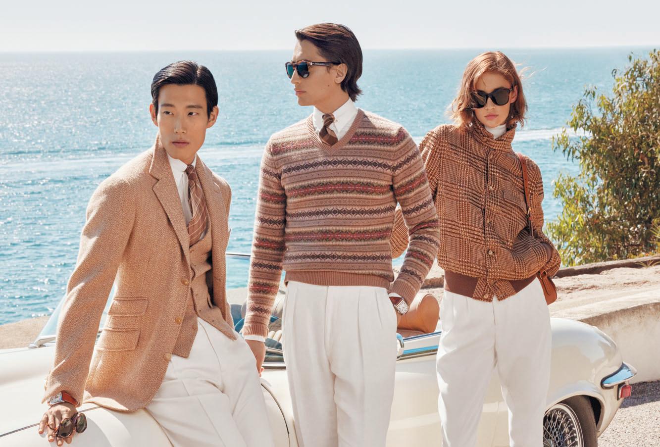 실루엣으로재탄생시킨재킷이돋보이는데, 랄프로렌컬렉션스프 링₩섬머딜리버리는크림과석양의빛깔로전개되는컬러팔레트와 함께아름다운캘리포니아남부해안의골든아워, 그리고그안에서 의평온한자유를상상하게한다. 맨즈웨어테일러링에서영감받은