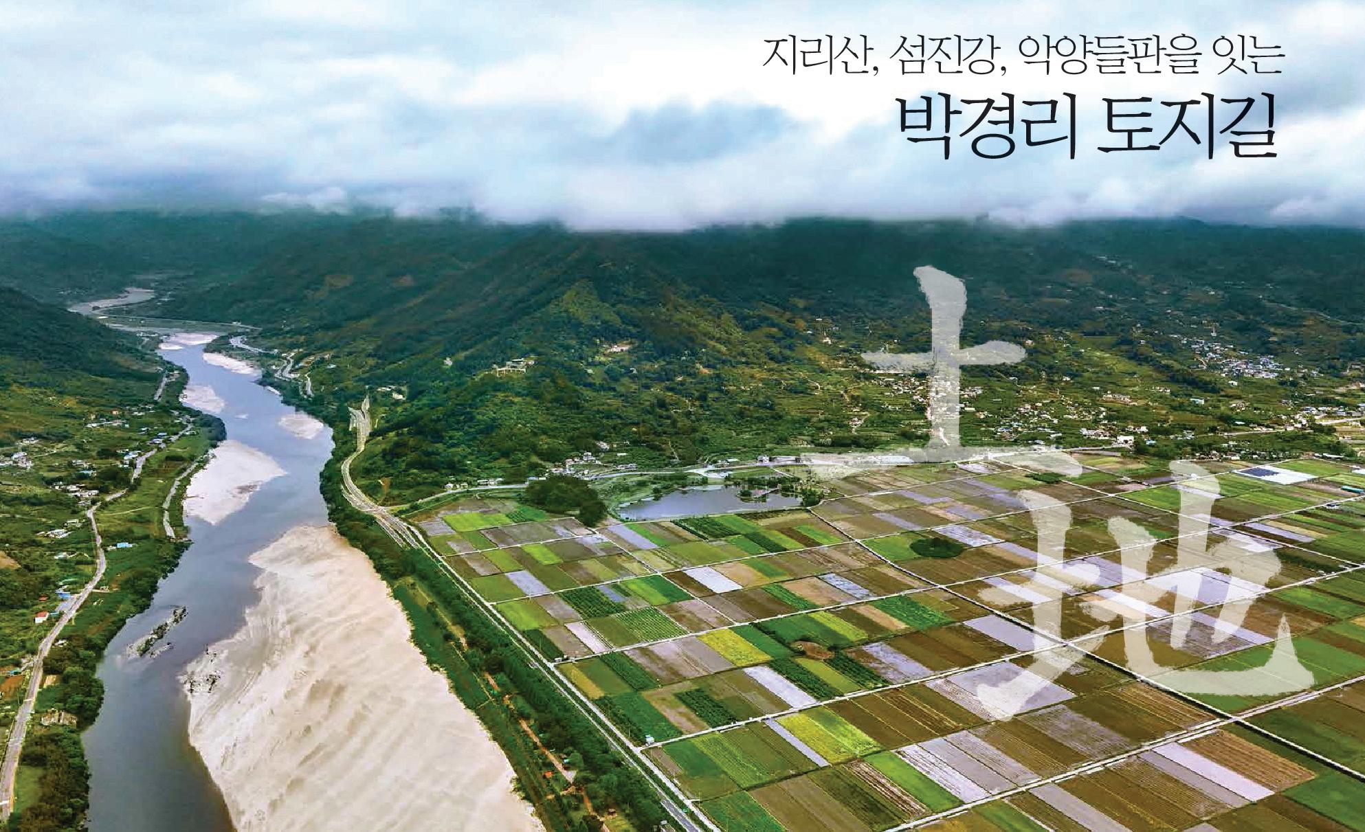 줄 섬진강이 만나는 곳에 넓게 자 리 잡은 평사리를 발견했을 때, ‘토 지’의 배경이 될 장소를 찾던 박경 리는 ‘바로 이곳’이라며 기뻐했다 고 한다. 지리산은 산체가 크고, 바위가
