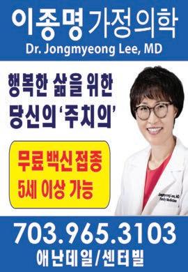 -NY정기운행 소량화물/ 유학생 우대 분실/ 파손 보험커버 쓰레기 용품 처리가능 주재원/ 대사관 배송전문 Tel. 703-298-1919 7000 Newington Rd, suite H, Lorton VA 22079 www.vapumyang.com/va@pumyang. com/vapumyang@gmail.com 포장이사 및 타주이사 범양해운이 책임 지겠습니다. 박동수 치과 ·풍부한 임상경험 가장 완벽한 진료 ·적정한 진료비용 703-466-5115 Care Advantage 영스헬스케어