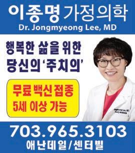 소량화물/ 유학생 우대 분실/ 파손 보험커버 쓰레기 용품 처리가능 주재원/ 대사관 배송전문 Tel. 703-298-1919 7000 Newington Rd, suite H, Lorton VA 22079 www.vapumyang.com/va@pumyang. com/vapumyang@gmail.com 포장이사 및 타주이사 범양해운이 책임 지겠습니다. 박동수 치과 ·풍부한 임상경험 가장 완벽한 진료 ·적정한 진료비용 703-466-5115 Care Advantage 영스헬스케어 Office Staffs(full time) Korean/English(bilingual) Benefits & Paid Holiday 571-562-7136 703-649-4271 mcho@careadvantageinc.com 직원모집 애난데일 K MARKET 전산부 및 Receiving 직원 경험자 우대 accounting@kmarketusa.com 초대형 건강문화 시설 한국전통 온열요법 활력 충전·면역력↑ 킹스파 버지니아 703-957-3010 703-817-2818(첸틸리)