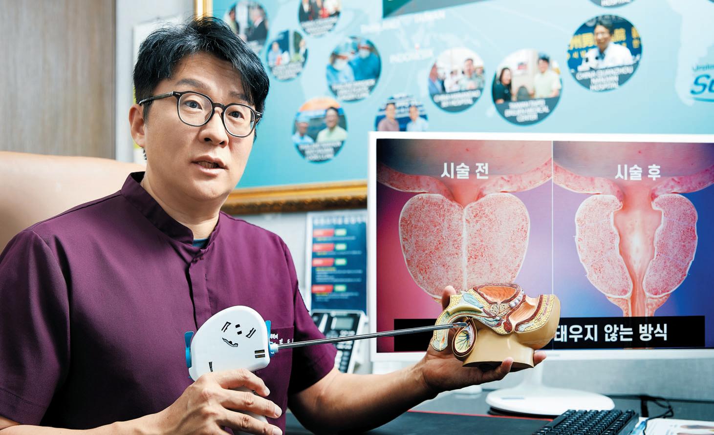 한다. 다만약물치료는초기증상을완화할뿐, 약 복용만으로비대해진전립선크기를줄이긴어렵 다. 이로인해많은환자가경요도전립선절제술과 같은수술을선택해왔다. 경요도전립선절제술은요 도에방광내시경을삽입한뒤열을이용해전립선 조직을긁어내는치료법으로, 약물치료와달리직 접적인효과를기대할수있다. 그러나조직제거 과정에서요도₩사정관손상, 출혈, 마취등에대한